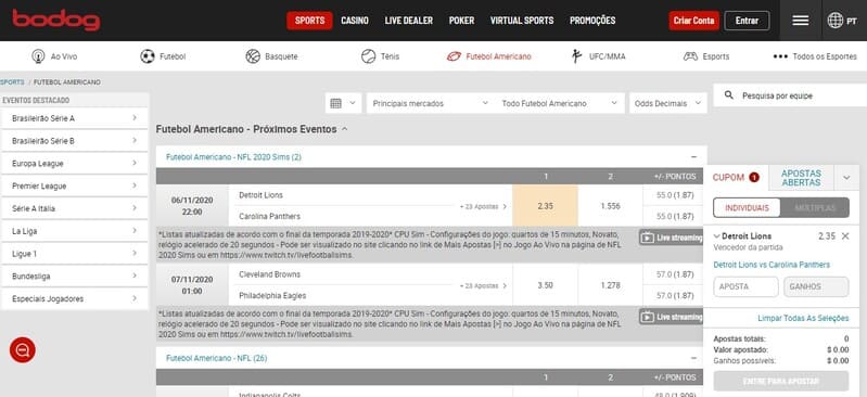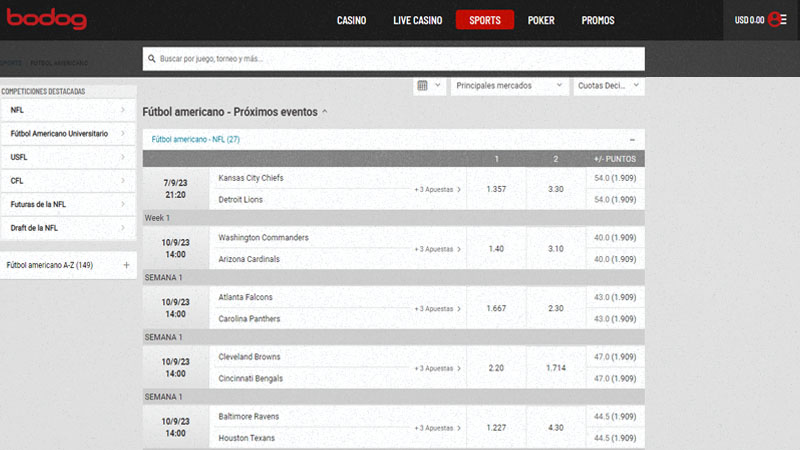 - ¿Cómo apostar al fútbol americano en Bodog?